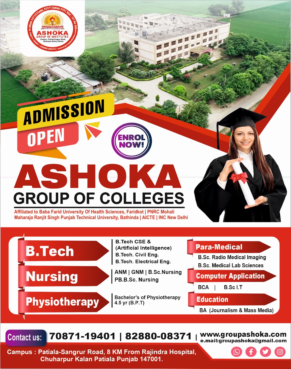 CAMPUS ADDRESS : PATIALA-SANGRUR ROAD, 8 KM FROM RAJINDRA HOSPITAL, BEHIND ROYAL CASTLE PALACE, CHUHARPUR KALAN (PATIALA, PUNJAB).